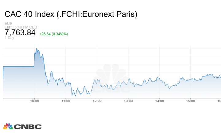 في حين صعد مؤشر CAC 40 الفرنسي بنحو 26.64 نقطة أو بنسبة 0.34% عند الإغلاق إلى مستوى 7763.84 نقطة.