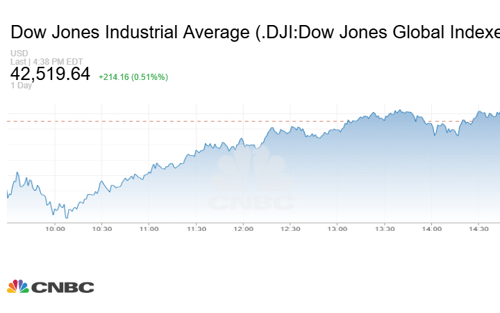 ارتفع مؤشر Dow Jones الصناعي 214.16 نقطة أو بنسبة 0.51% عند إغلاق تعاملات الثلاثاء إلى 42519.64 نقطة.
