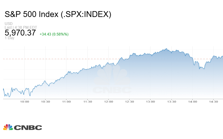 كما أغلق مؤشر S&P 500 التعاملات على صعود 34.43 نقطة أو بنسبة 0.58% إلى 5970.37 نقطة.
