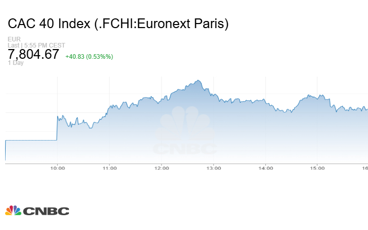 في حين صعد مؤشر CAC 40 الفرنسي بنحو 40.83 نقطة أو بنسبة 0.53% عند الإغلاق إلى مستوى 7804.67 نقطة.