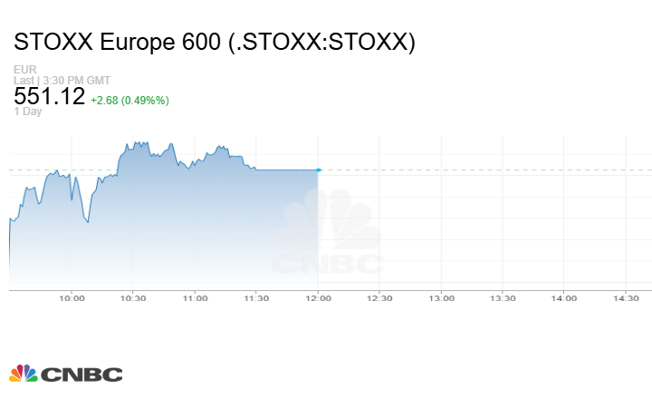 وارتفع مؤشر Stoxx 600 الأوروبي 2.68 نقطة أو بنسبة 0.49% إلى مستوى 551.12 نقطة في نهاية التعاملات.