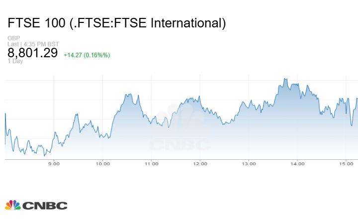 وزاد مؤشر FTSE 100 البريطاني 14.27 نقطة أو بنسبة 0.16% عند الإغلاق إلى مستوى 8801.29 نقطة.