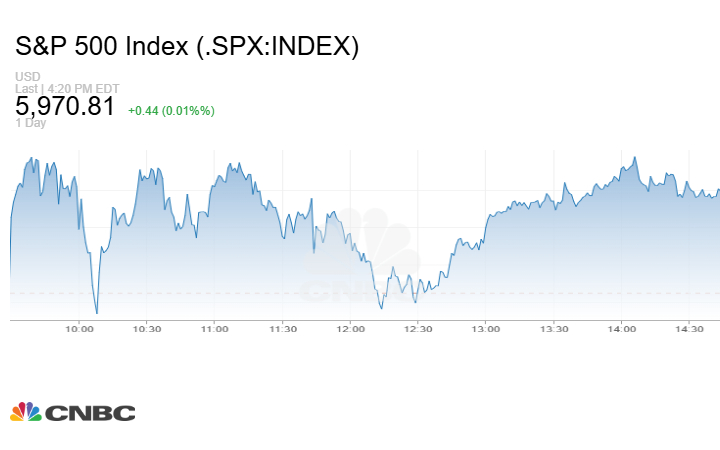 بينما أغلق مؤشر S&P 500 التعاملات على صعود 0.44 نقطة أو بنسبة 0.01% إلى 5970.81 نقطة.