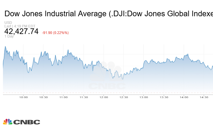 انخفض مؤشر Dow Jones الصناعي 91.90 نقطة أو بنسبة 0.22% عند إغلاق تعاملات الأربعاء إلى 42427.74 نقطة.