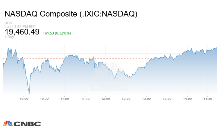 وزاد مؤشر Nasdaq المركب عند الإغلاق بنحو 61.53 نقطة أو بنسبة 0.32% إلى 19460.49 نقطة.