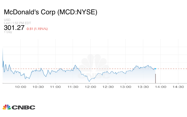 انخفض سهم سلسلة مطاعم الوجبات السريعة ماكدونالدز، بأكثر من 1% بعد أن خفضت شركة Redburn Atlantic توصيتها للسهم إلى البيع؛ وذلك بسبب انخفاض عدد الزبائن.