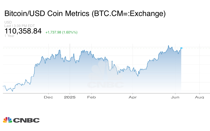 في الوقت نفسه، ارتفعت قيمة بيتكوين بنسبة 57% خلال العام الماضي، متجاوزةً رسمياً 110,000 دولار أميركي لأول مرة في التاريخ.