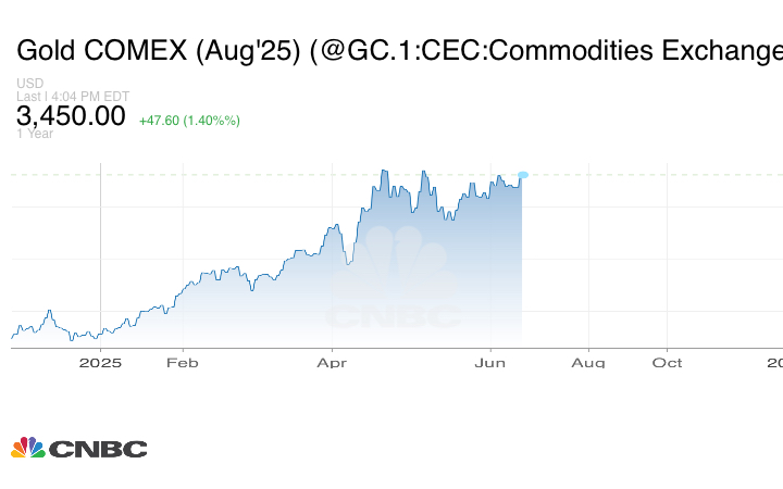 بلغت العقود الآجلة للذهب أعلى مستوياتها منذ أبريل، مسجلةً ارتفاعاً بنسبة 1.4%.