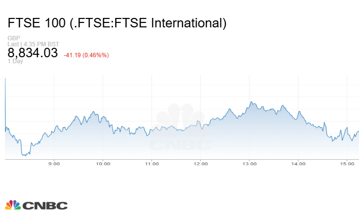 كما هبط مؤشر FTSE 100 البريطاني 41.19 نقطة أو بنسبة 0.46% عند الإغلاق إلى مستوى 8834.03 نقطة.