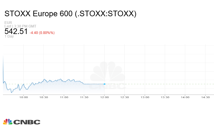 وانخفض مؤشر Stoxx 600 الأوروبي 4.40 نقطة أو بنسبة 0.80% إلى مستوى 542.51 نقطة في نهاية التعاملات.