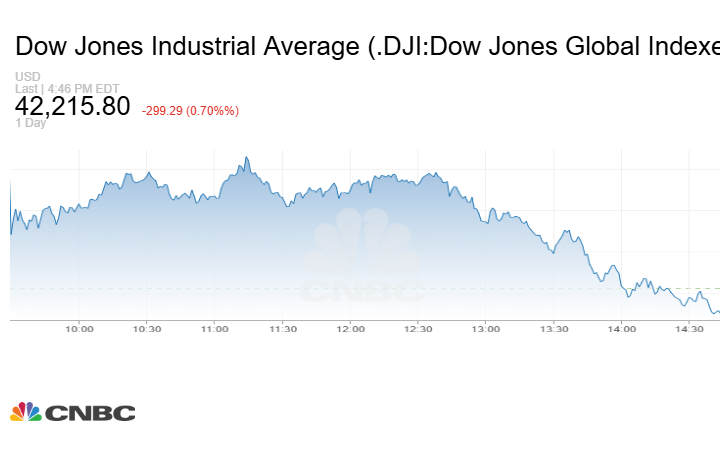 انخفض مؤشر Dow Jones الصناعي بنحو 299.29 نقطة أو بنسبة 0.70% عند إغلاق تعاملات الثلاثاء إلى 42215.80 نقطة.