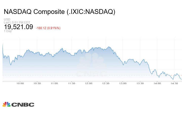 وتراجع مؤشر Nasdaq المركب عند الإغلاق بنحو 180.12 نقطة أو بنسبة 0.91% إلى 19521.09 نقطة.