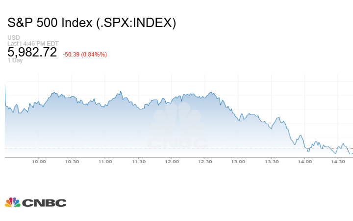 كما أغلق مؤشر S&P 500 التعاملات على هبوط 50.39 نقطة أو بنسبة 0.84% إلى 5982.72 نقطة.