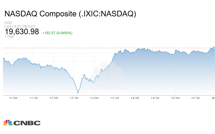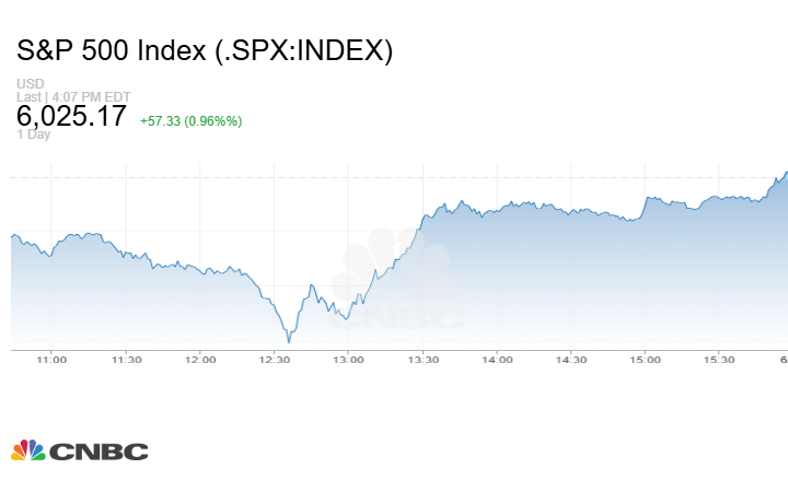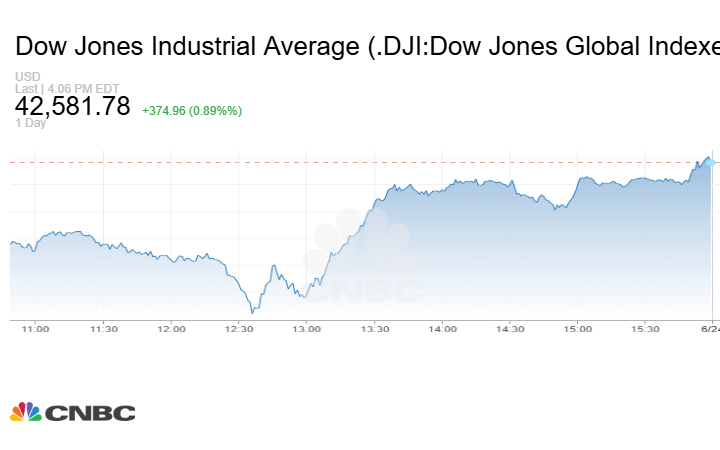 وسجّل مؤشر داو جونز الصناعي ارتفاعًا بـ374.96 نقطة (0.89%)، بينما صعد ستاندرد آند بورز 500 بنسبة 0.96%، وارتفع ناسداك المركب بنسبة 0.94%.