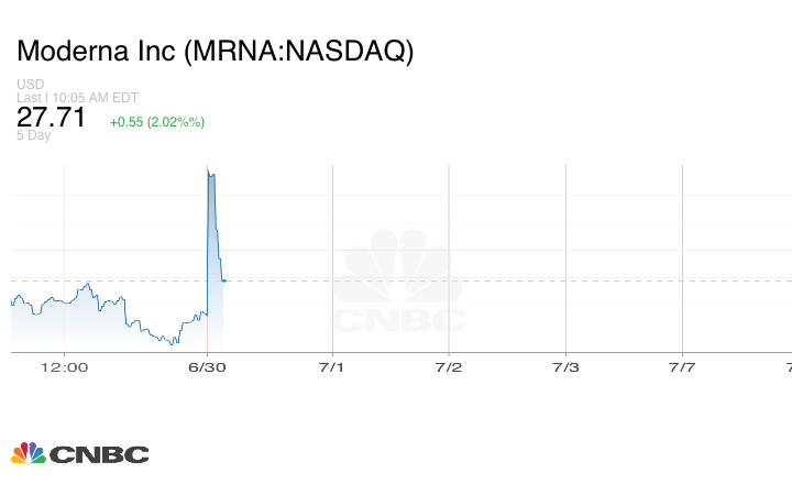 ارتفعت أسهم شركة Moderna بأكثر من 5% في سوق ما قبل التداول يوم الاثنين، قبل أن تتراجع مكسبها بعد افتتاح وول ستريت إلى 2%، بعد أن أعلنت شركة التكنولوجيا الحيوية عن نتائج إيجابية في المرحلة المتأخرة من تجارب لقاح الإنفلونزا التجريبي القائم على mRNA، مما فتح الباب أمام الموافقة على اللقاح والتقدم في لقاح الإنفلونزا وكوفيد-19 المنفصل الذي تنتجه الشركة.