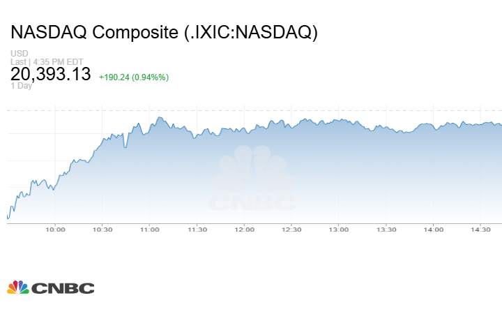 كما ارتفع مؤشر Nasdaq المركب عند الإغلاق بنحو 190.24 نقطة أو بنسبة 0.94% إلى 20393.13 نقطة.