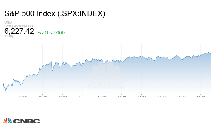 بينما أغلق مؤشر S&P 500 التعاملات على صعود 29.41 نقطة أو بنسبة 0.47% إلى 6227.42 نقطة.