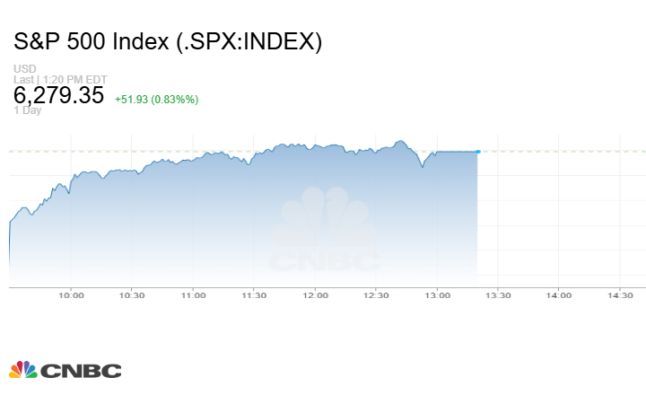 وارتفع مؤشر S&P 500 بنسبة 0.8%، كما صعد مؤشر Nasdaq بنسبة 1%. وزاد مؤشر Dow Jones الصناعي 344 نقطة، أو بنسبة 0.8%.