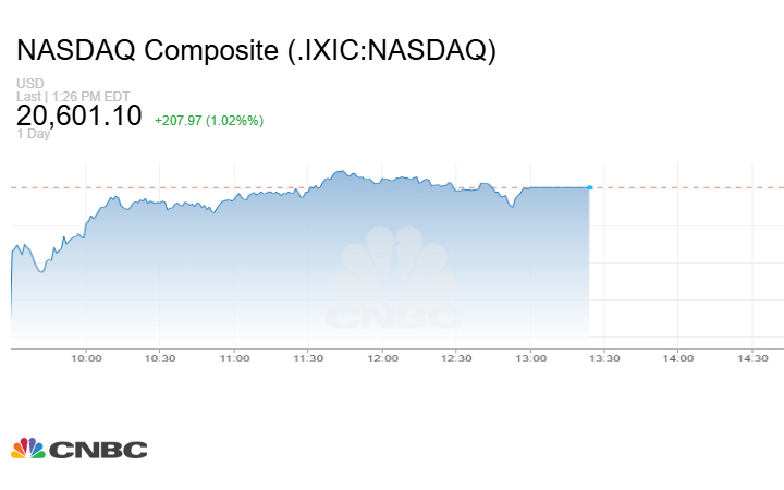 وزاد مؤشر Nasdaq المركب عند الإغلاق بنحو 207.97 نقطة أو بنسبة 1.02% إلى 20601.10 نقطة.