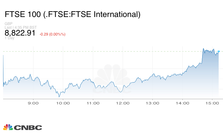 في المقابل، استقر مؤشر FTSE 100 البريطاني في المنطقة الحمراء عند 8.828.65 نقطة.