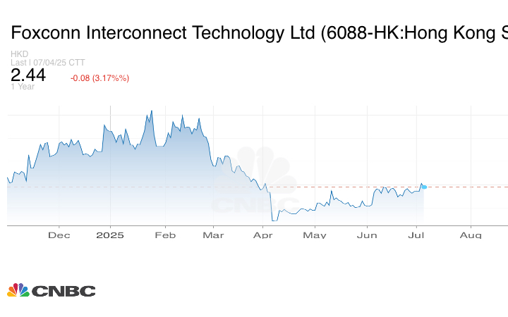 قفزت أسهم فوكسكون بنسبة 76% العام الماضي، متجاوزةً بذلك ارتفاع سوق تايوان بنسبة 28.5%، لكنها انخفضت بنسبة 12.5% حتى الآن هذا العام، مما يعكس ضغطًا أوسع على أسهم التكنولوجيا التي تأثرت بسياسة ترامب التجارية المضطربة.