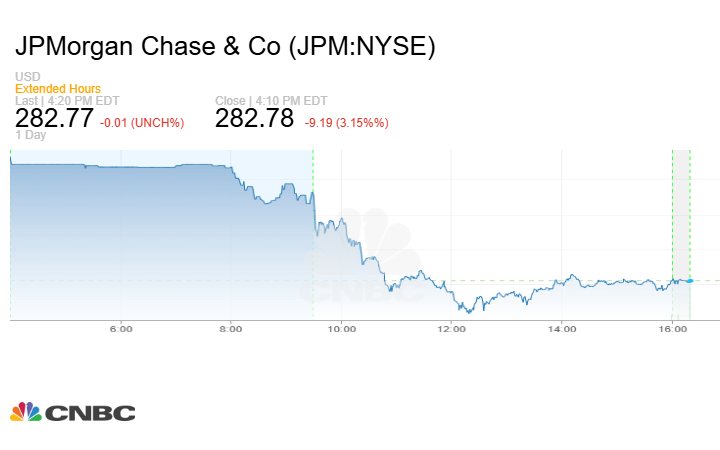 وتراجعت أسهم جي بي مورغان JPMorgan، وبنك أوف أميركا Bank of America بنسبة 3%، كما انخفض سهم غولدمان ساكس Goldman بنسبة 2%.