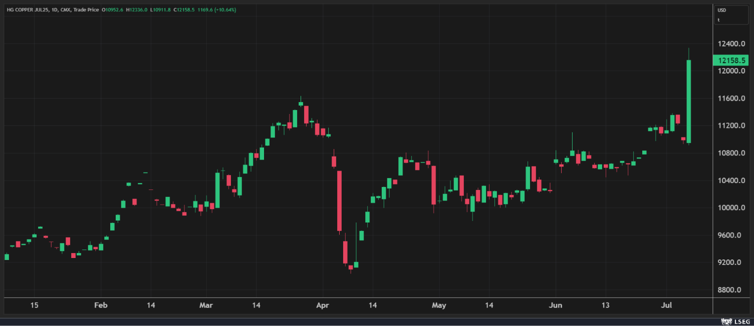 ارتفعت العقود الآجلة للنحاس الأميركي بأكثر من 10% إلى أعلى مستوى في تاريخها، وذلك بعد إعلان الرئيس الأميركي عزمه فرض رسوم جمركية بنسبة 50% على النحاس.
