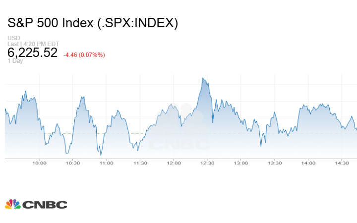 كما أغلق مؤشر S&P 500 التعاملات على هبوط 4.46 نقطة أو بنسبة 0.07% إلى 6225.52 نقطة.