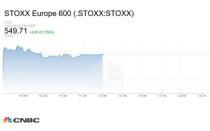 وارتفع مؤشر Stoxx 600 الأوروبي أربع نقاط أو بنسبة 0.73% إلى مستوى 549.71 نقطة في نهاية التعاملات.