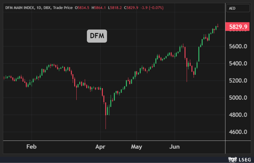 وفي سوق دبي، تراجع المؤشر العام بنحو 0.1% ليتنازل عن أعلى مستوياته في 17 عاماً متأثراً بانخفاض سهم بنك الإمارات دبي الوطني بنسبة 0.6%.