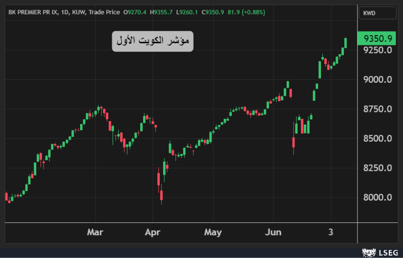 مؤشر الكويت العام يحقق أعلى إغلاق أسبوعي في تاريخه.