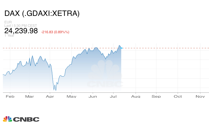 كما تراجع مؤشر داكس الألماني بنسبة 0.89% إلى 24.239.98 نقطة.