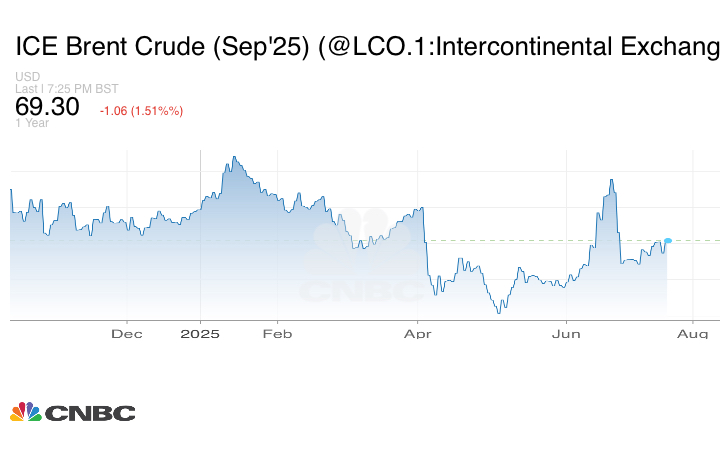 وتراجعت العقود الآجلة لخام برنت 1.01 دولار أو 1.41% إلى 69.34 دولار للبرميل.