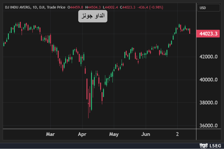 تراجع مؤشر الداو جونز بنحو 0.98% أي ما يعادل 436 نقطة في جلسة الثلاثاء ليتكبد أكبر خسارة يومية في شهر.