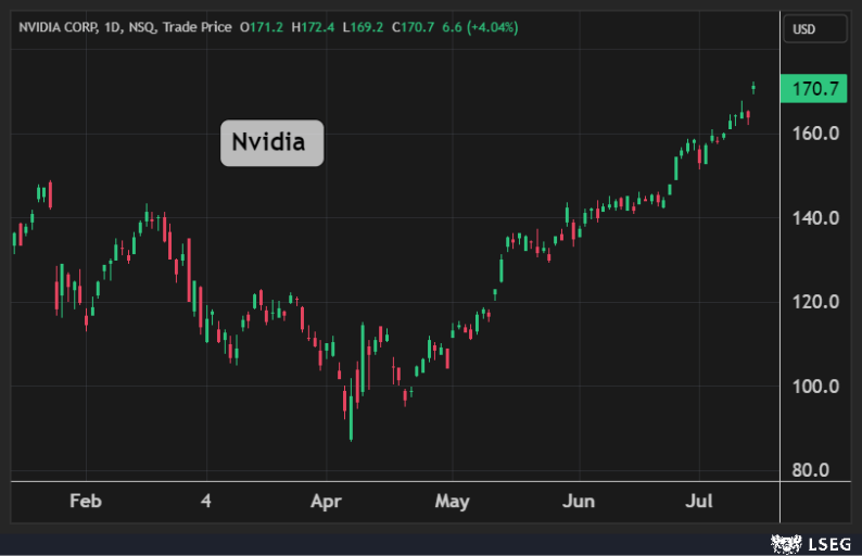 قفز سهم Nvidia بنسبة 4% في جلسة الثلاثاء ليغلق فوق مستويات 170 دولاراً لأول مرة في تاريخه، لتضيف الشركة 162 مليار دولار إلى قيمتها السوقية في يوم واحد.