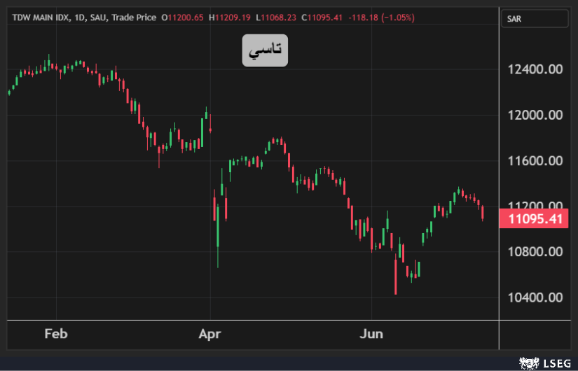 تراجع مؤشر تاسي بأكثر من 1% في جلسة الثلاثاء مسجلاً سادس خسارة يومية على التوالي لتكون بذلك أطول سلسلة خسائر يومية في أكثر من 20 شهراً.