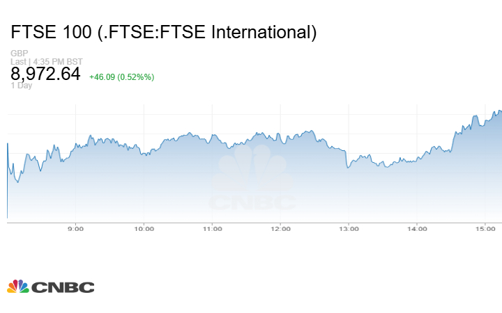 وصعد مؤشر FTSE 100 البريطاني 46.09 نقطة أو بنسبة 0.52% عند الإغلاق إلى مستوى 8972.64 نقطة.