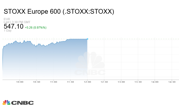 وارتفع مؤشر Stoxx 600 الأوروبي 5.26 نقطة أو بنسبة 0.97% إلى مستوى 547.10 نقطة في نهاية التعاملات.