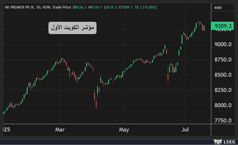 ارتفع مؤشر الكويت الأول بنسبة 0.85% في جلسة الخميس بدعم من ارتفاع سهمي بيتك وبنك الكويت الوطني بنسبة 0.75% و1.6% على التوالي.