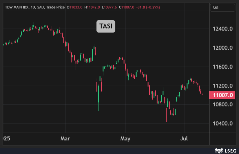 تراجع مؤشر تاسي بنسبة 0.3% في جلسة الخميس مسجلاً ثامن خسارة يومية على التوالي لتكون بذلك أطول سلسلة خسائر يومية في أكثر من 20 شهراً.