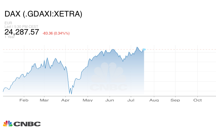 شهد مؤشر داكس الألماني تراجعاً بنسبة 0.34% إلى 24.287.57 نقطة.