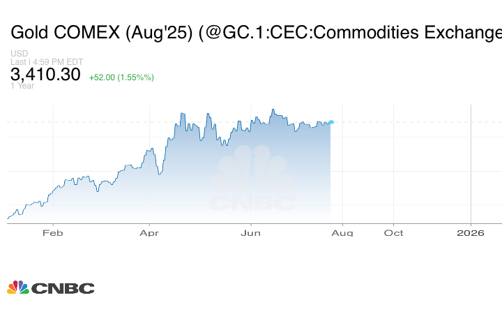 وقال ديفيد ميجر، مدير قطاع التداول في المعادن لدى هاي ريدج فيوتشرز "اقتراب الموعد النهائي في أول أغسطس يلقي بحالة من الضبابية على السوق، وهو عامل داعم (للذهب) بالتأكيد".
