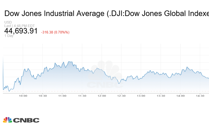 انخفض مؤشر Dow Jones الصناعي بنحو 316.38 نقطة أو بنسبة 0.70% عند إغلاق تعاملات الخميس إلى 44693.91 نقطة.
