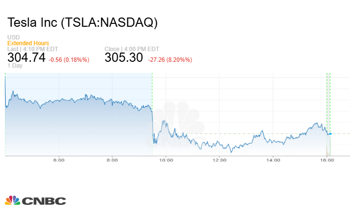 وأيضاً كبح انخفاض أسهم تسلا Tesla مكاسب السوق، وذلك مع تراجعها بأكثر من 8% عقب الإعلان عن هبوط إيرادات قطاع السيارات بالشركة للربع الثاني على التوالي.