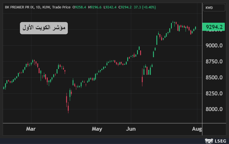 مؤشر الكويت الأول يسجل ثالث مكاسب شهرية على التوالي