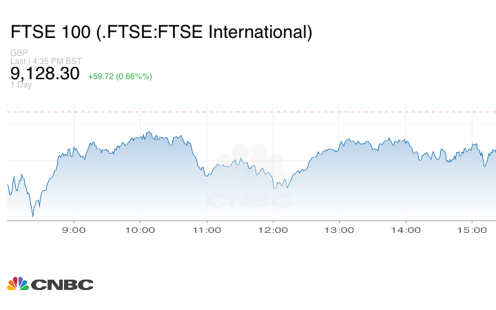 وصعد مؤشر فوتسي 100 البريطاني بنسبة 0.66% إلى 9.128.30 نقطة.