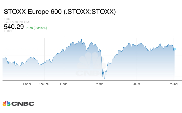 أغلقت الأسهم الأوروبية على ارتفاع، يوم الإثنين 4 أغسطس/ آب، وعوضت بعض خسائرها بعد موجة بيع حادة يوم الجمعة، مع تفاعل المستثمرين مع فرض رسوم جمركية أميركية ضخمة بلغت 39%.