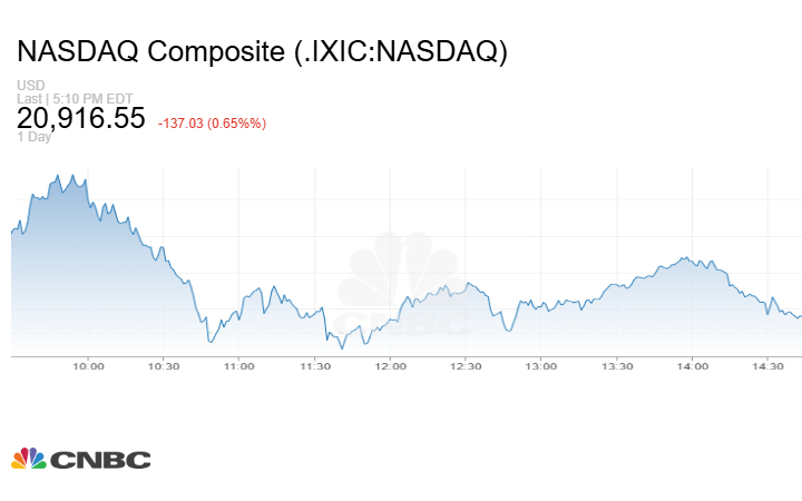 وتراجع مؤشر Nasdaq المركب عند الإغلاق بنحو 137.03 نقطة أو بنسبة 0.65% إلى 20916.55 نقطة.