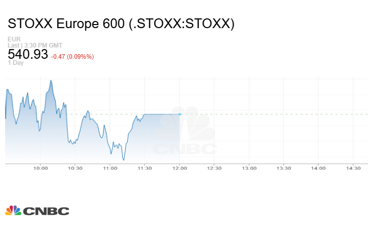 وانخفض مؤشر Stoxx 600 الأوروبي 0.47 نقطة أو بنسبة 0.09% إلى مستوى 540.93 نقطة في نهاية التعاملات.