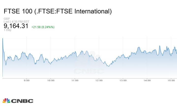 وزاد مؤشر FTSE 100 البريطاني 21.58 نقطة أو بنسبة 0.24% عند الإغلاق إلى مستوى 9164.31 نقطة.